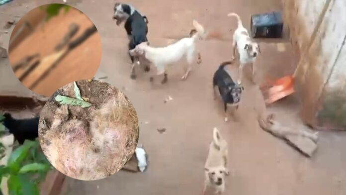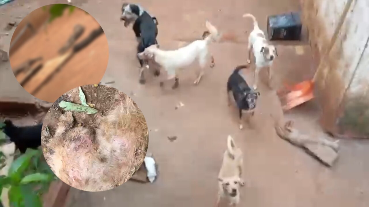As imagens registradas demonstram a negligência e o abandono. Há gatos já em decomposição, dejetos espalhados e cachorros magros ou debilitados. “Tem animais presos também.”