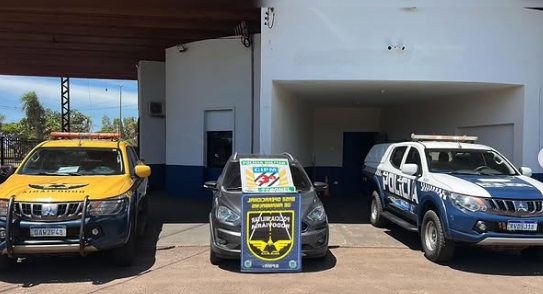 O automóvel foi interceptado no km 130 da MS-289. Durante a abordagem, os ocupantes demonstraram nervosismo e apresentaram informações contraditórias sobre o motivo da viagem. Em checagem aos sistemas policiais, foi constatado que o veículo possuía registro de roubo datado de 18/01/2026, ocorrido no estado de São Paulo.
