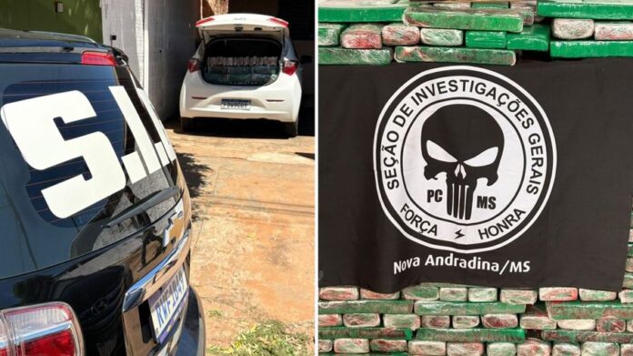 Durante a ação policial, foi realizada a abordagem e, no decorrer das averiguações, foi localizada expressiva quantidade de substância entorpecente, totalizando aproximadamente 472,9 quilos de maconha, acondicionada no interior do carro.