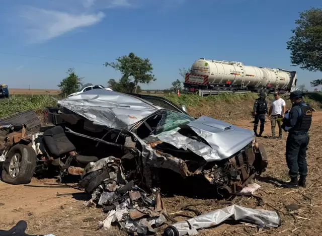 Acidente entre caminhonete L-200 Triton e uma carreta-tanque matou um homem e deixou uma mulher ferida na manhã desta quinta-feira (23), na MS-480, trecho entre Batayporã e Anaurilândia, quase na divisa com São Paulo.