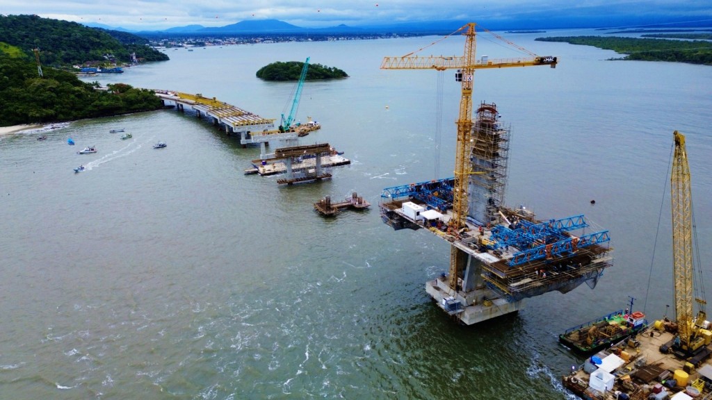 A ponte, que ligará os municípios de Guaratuba e Matinhos, no Paraná, está 73% concluída - Foto: Divulgação