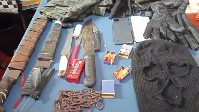 Ao chegarem ao local, os policiais encontraram os três menores na sala da direção. Entre os itens apreendidos estavam facas, um machete, capuzes e uma calça camuflada. Dois dos adolescentes também exibiam suásticas nazistas tatuadas no braço.