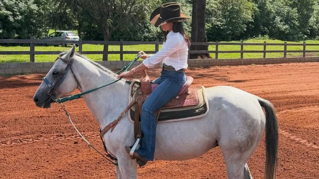 Na legenda, a artista divertiu os seguidores com a frase: “Mamãe, deixe sua filha ser uma boiadeira”. Para o momento, ela apostou em um visual clássico do estilo: calça jeans, bota, chapéu de cowboy e blusa social branca, combinando elegância e autenticidade.