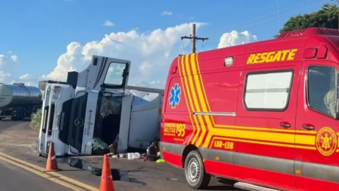 Uma motorista, não identificada, sofreu um TCE (Traumatismo Craniano Encefálico) após a carreta que dirigia tombar no trevo da MS-276, na região de Batayporã, na tarde dessa quarta-feira (19).