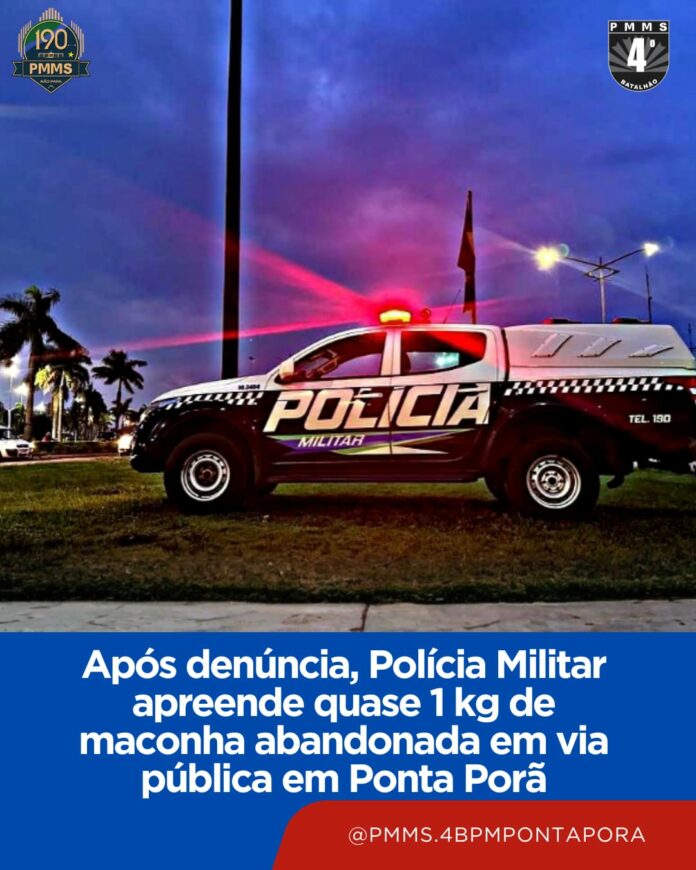 Após denúncia, PM apreende quase 1 kg de maconha abandonada em via pública em Ponta Porã