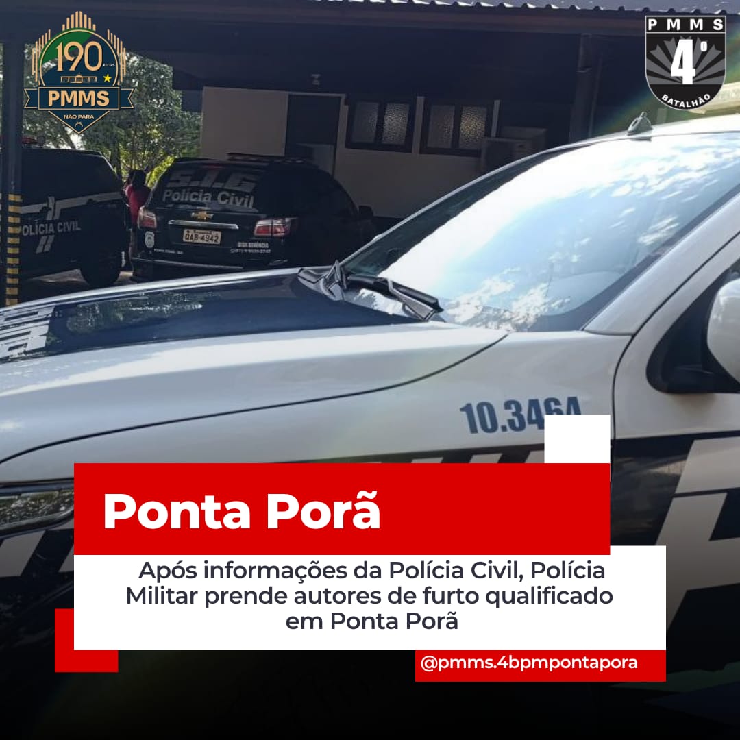 Policiais Militares do 4º Batalhão de Polícia Militar, prenderam nesta quarta-feira (29) dois indivíduos por envolvimento em um furto qualificado pelo rompimento de obstáculo, onde foram subtraídos objetos de trabalho de uma barbearia localizada no bairro Vila Áurea, em Ponta Porã.