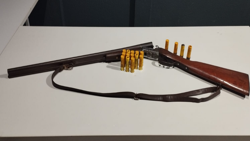 O homem foi detido e durante a revista pessoal, os policiais encontraram duas munições calibre .20 intactas em seu bolso. Ao verificar a espingarda, foi constatado que se tratava de uma arma de fogo marca AMADEO ROSSI calibre .20, municiada com dois cartuchos intactos.