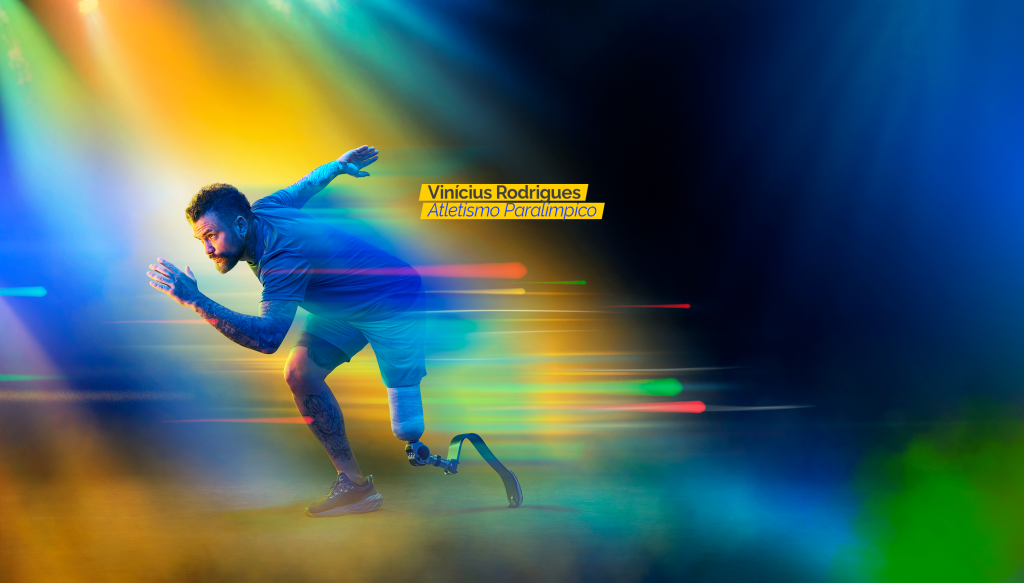 Vinícius conta que o esporte paralímpico transformou sua vida e que já teve a oportunidade de viajar o mundo competindo em diversos países. Ele revela que recebeu incentivo da medalhista paralímpica Terezinha Guilhermina, que o visitou no hospital logo após a cirurgia. “Ela foi meu grande incentivo e é minha madrinha no esporte”, diz.