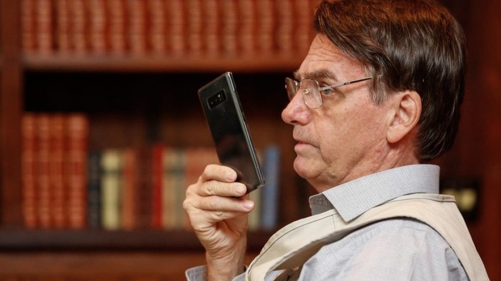 O ex-presidente Jair Bolsonaro falando ao celular no início do mandato
