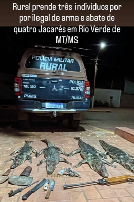 Três homens foram flagrados pela Polícia Militar Rural de Coxim (MS) transportando animais silvestres abatidos e armamento ilegal na noite da última terça-feira (30), por volta das 22h, durante patrulhamento na Rodovia MS-423, na região pantaneira do município.