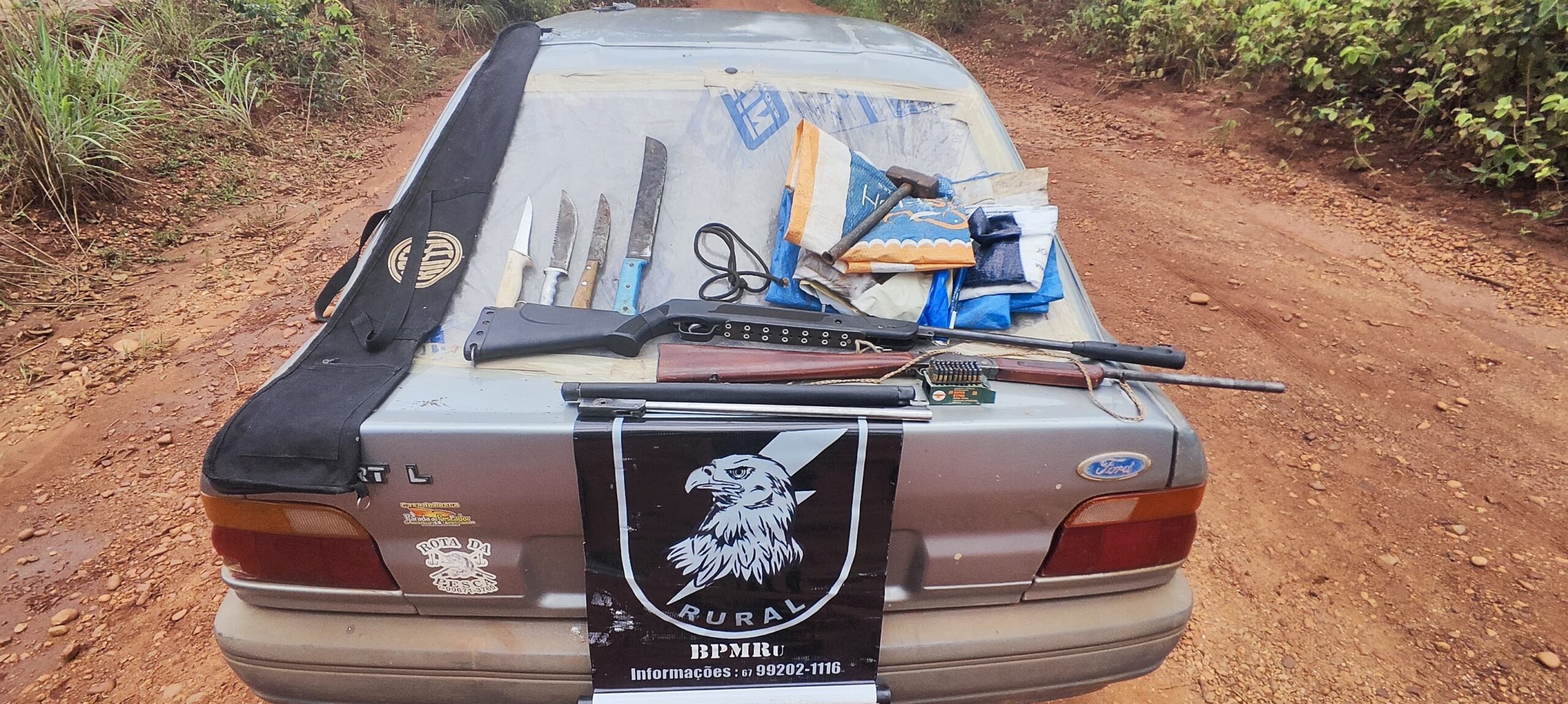 Durante a ação, os policiais localizaram duas espingardas calibre .22, sendo uma delas adaptada, além de 49 munições, facas, facão e outros objetos. Os envolvidos alegaram que utilizariam o armamento para proteção pessoal, porém não apresentaram documentação legal.