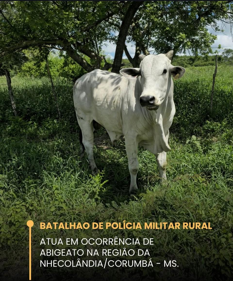 Na manhã desta quinta-feira (15), a equipe do Batalhão de Polícia Militar Rural (BPMRu) atendeu uma ocorrência de furto qualificado (abigeato) no Assentamento Taquaral, região da Nhecolândia, em Corumbá/MS.