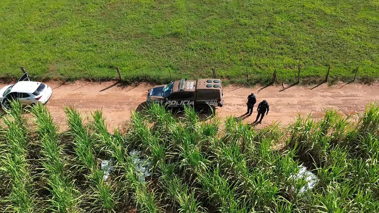 Após denúncia, a equipe da Polícia Militar Rural localizou 1.175 kg de insumos agrícolas escondidos em meio a um canavial às margens da BR-158, entre Brasilândia/MS e a divisa com o estado de São Paulo.