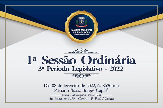 O presidente da Câmara Municipal de Ponta Porã, Vanderlei Avelino e demais vereadores convidam toda a população para participar da primeira sessão ordinária do ano marcada para esta terça-feira, 08 de fevereiro, às 8h30min no Plenário Isaac Borges Capilé.