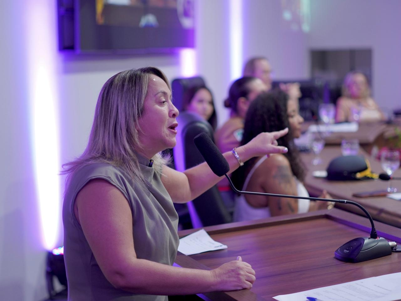 Em sua fala, a deputada também destacou a importância da presença feminina nos espaços de decisão e da união entre as mulheres. “Quando uma mulher ocupa seu espaço, ela puxa outra”, disse, ao defender que cada conquista feminina precisa abrir caminho para outras avançarem.