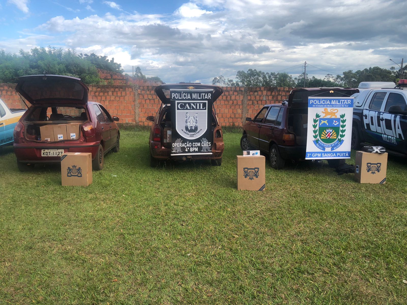 Em Operação Conjunta, Policiais Militares de Sanga Puitã e do Canil de Ponta Porã apreendem dois veículos com cigarros contrabandeados.
