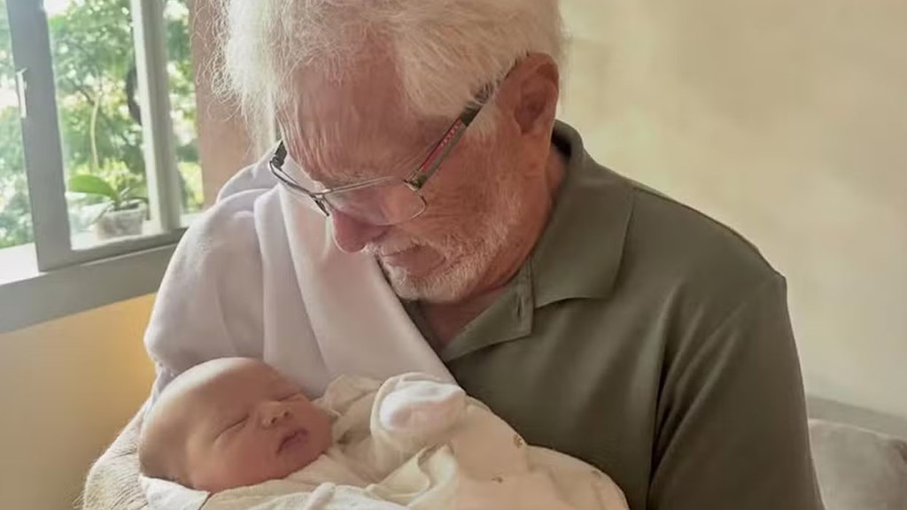 O apresentador e humorista Carlos Alberto de Nóbrega, de 90 anos, compartilhou neste sábado (11) uma foto emocionante do momento em que conheceu o bisneto recém-nascido. No registro publicado nas redes sociais, ele aparece segurando o bebê nos braços e celebrando a chegada do novo integrante da família, sem revelar o nome da criança.