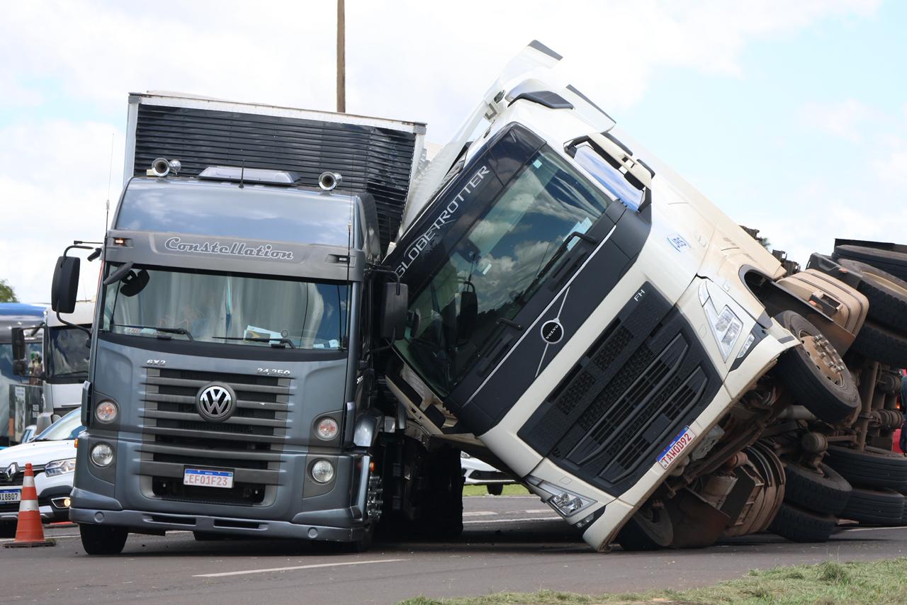 Na manhã desta quinta-feira (8), carreta e caminhão se envolveram em um acidente. O caso aconteceu na rotatória de Campo Grande com saída para São Paulo.