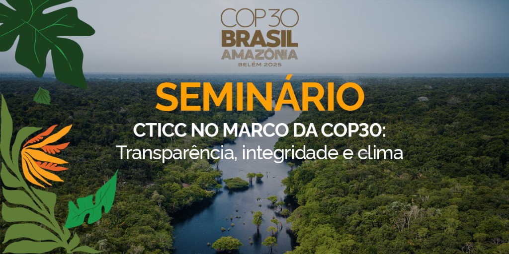 No dia 24 de outubro, a Controladoria-Geral da União (CGU) realizará o “Seminário CTICC no marco da COP30 – Transparência, Integridade e Clima”, parte da preparação do órgão para as discussões da conferência sobre a agenda climática. O evento integra as inciativas do Conselho de Transparência, integridade e Combate à Corrupção (CTICC).