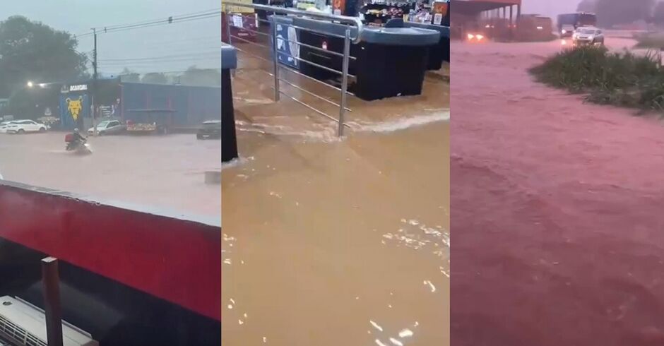Cerca de 140mm de chuva foram registrados em Maracaju, segundo o portal Noticidade. Além disso, a água chegou a alagar um atacadista, e clientes tentavam passar pela enchente com carrinhos de compras. Imagens do alto mostram o comércio tomado pela água.