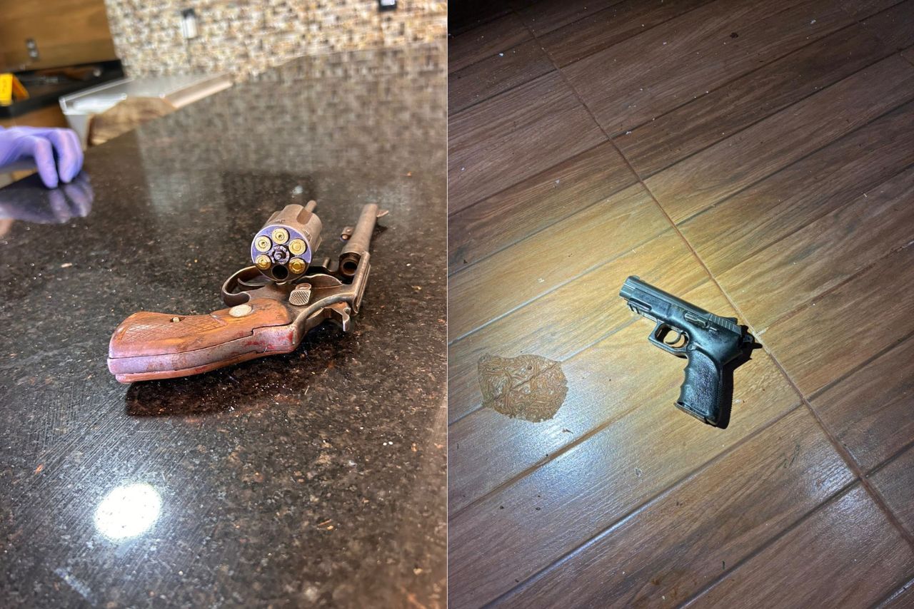 Armas que estavam com os criminosos. (Foto: Reprodução, Batalhão de Choque)