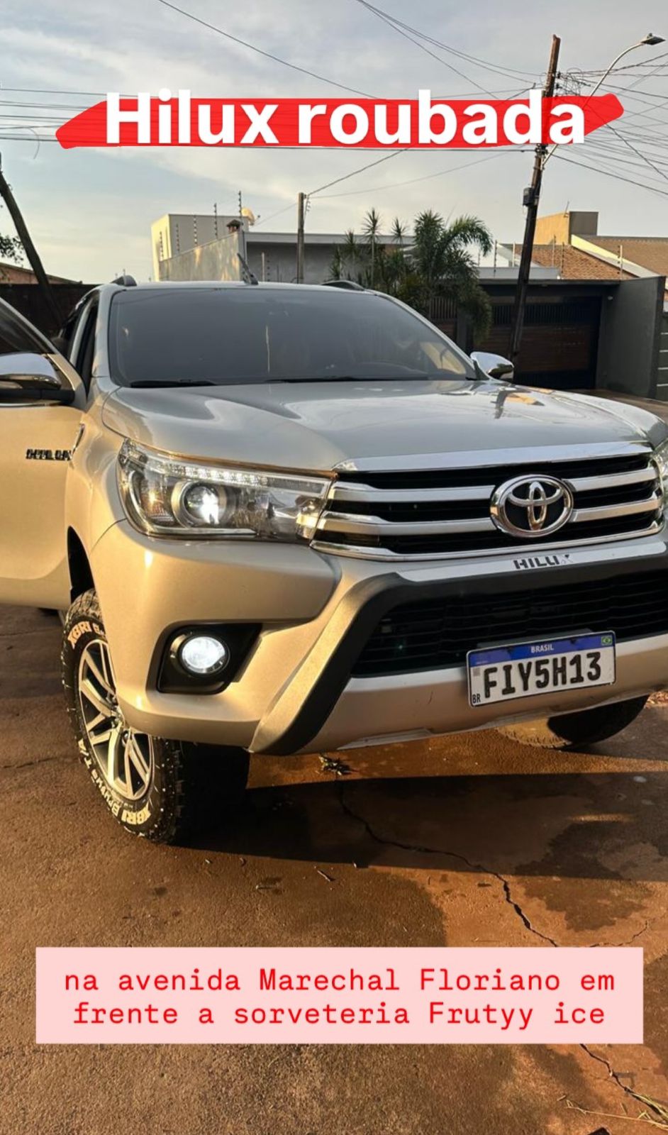 Na noite de sexta-feira (16), um comerciante de Ponta Porã estacionou a sua caminhonete Toyota Hilux de cor prata, placas FIY5h13 Brasil, Mercosul, ano de 2017, em frente ao seu comércio, localizado na Marechal Floriano Peixoto, onde trabalhou normalmente, porem, ao sair para retornar para sua casa, dirigiu-se ao veículo, sendo que o mesmo não estava mais no local, pois havia sido furtado.