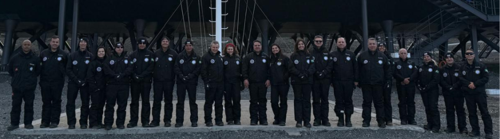 Durante a passagem pela Estação, os visitantes percorreram áreas técnicas, de convivência e de operação, além dos módulos isolados. Visitaram também a área verde, que reúne a praia, o espaço dos totens de placas – onde militares e pesquisadores deixam homenagens – e o conhecido esqueleto de baleia “Jacques Cousteau”, montado pela equipe do oceanógrafo francês entre as décadas de 1960 e 1970.
