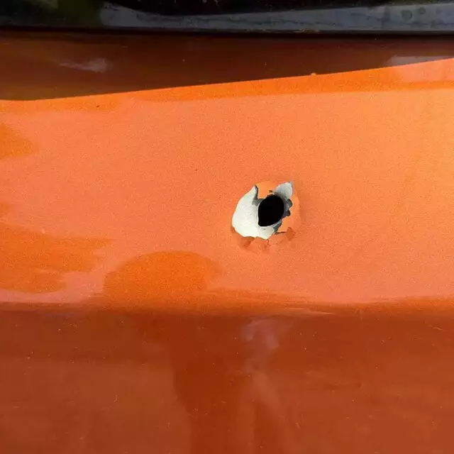 Os disparos atingiram uma das lanternas do automóvel, placa, bancos e para-brisas.