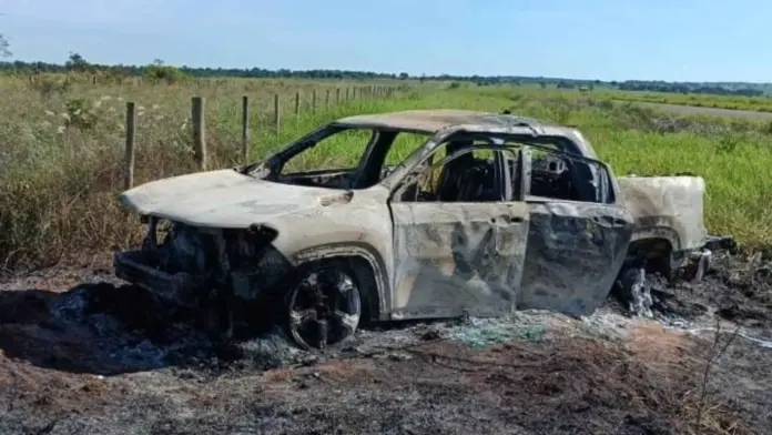 A caminhonete foi encontrada carbonizada na manhã de segunda-feira (23), na área rural da cidade, região de fronteira com Capitán Bado, no Paraguai.