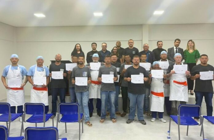 Em uma cerimônia marcada por emoção e esperança, 16 reeducandos do Centro Penal Agroindustrial da Gameleira receberam certificados de conclusão do curso de Panificação Artesanal, promovido pelo Serviço Nacional de Aprendizagem Comercial (SENAC) em parceria com a Agência Estadual de Administração do Sistema Penitenciário (Agepen), o Tribunal de Justiça de Mato Grosso do Sul (TJMS) – por meio da 2ª Vara de Execução Penal de Campo Grande – e a Federação do Comércio de Bens, Serviços e Turismo do estado (Fecomércio-MS).
