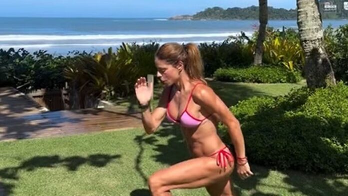 A apresentadora Daniella Cicarelli, de 47 anos, mostrou que está focada na vida fitness ao compartilhar um vídeo de treino nas redes sociais. Nas imagens, ela aparece se exercitando ao ar livre, à beira de uma piscina, cercada pela natureza e com vista para o mar.