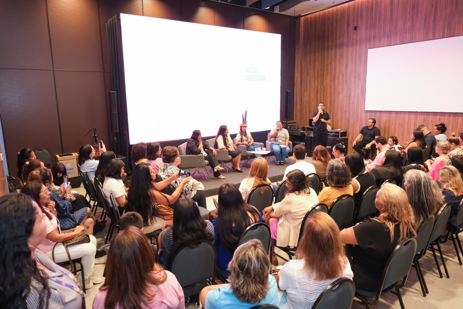 Na Sala Ipê Amarelo, o painel “Mulheres Indígenas – Nascer, viver e empreender na aldeia” reuniu lideranças que compartilharam experiências sobre como tradição e inovação podem caminhar juntas. Entre as participantes esteve a representante do povo Atikum em Mato Grosso do Sul, Nalva Vicente, que relatou a experiência com empreendedorismo na área de panificação artesanal.