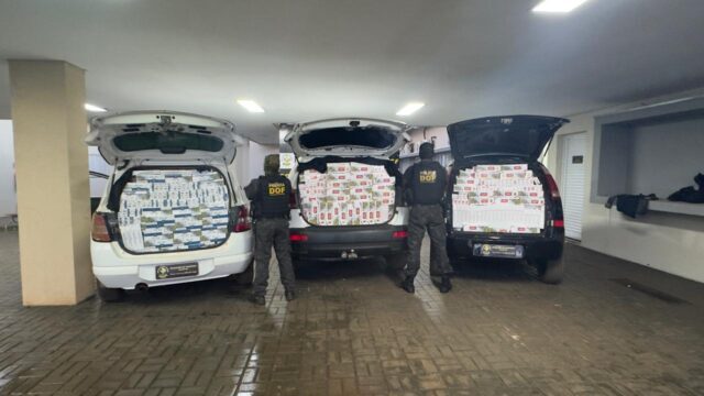 Policiais militares do DOF (Departamento de Operações de Fronteira) apreenderam, entre sexta-feira (24) e sábado (25), aproximadamente 9 mil pacotes de cigarros de origem estrangeira em duas ações nos municípios de Dourados e Nova Andradina e apreendeu quatro veículos. O prejuízo estimado ao crime organizado foi de R$ 700 mil.
