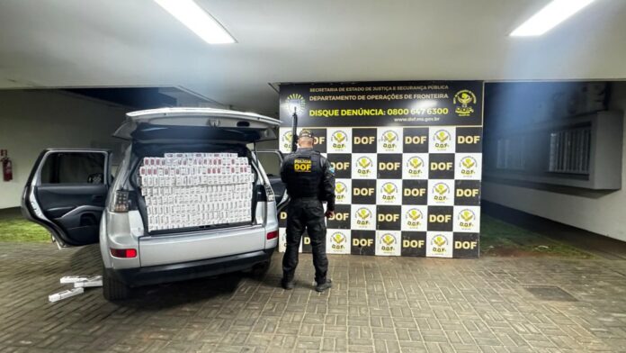 Policiais militares do DOF (Departamento de Operações de Fronteira) apreenderam, nesta segunda-feira (10), na BR-376, em Deodápolis, um veículo MMC Outlander carregado com 1.800 pacotes de cigarros contrabandeados do Paraguai. Na ação, um homem de 28 anos foi preso em flagrante.