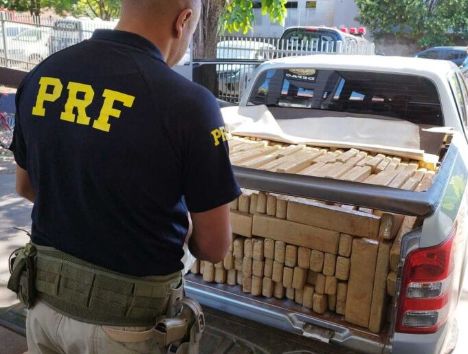 No veículo, a polícia encontrou centenas de tabletes de maconha e a pesagem está sendo feita. É estimado que a droga ultrapasse 1t.