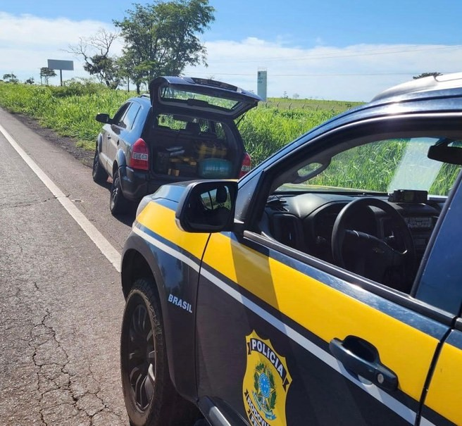 Em abordagem a um Hyundai/Tucson, na BR-267, os policiais encontraram 165 quilos de maconha e 20 quilos de skunk no porta malas do veículo.