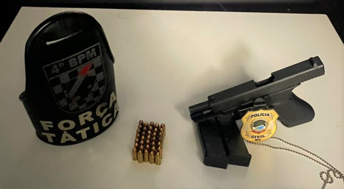 Munido das informações, a Equipe Policial Militar e Judiciária adentraram ao local, localizando o suspeito em um quarto, o qual estava em companhia de duas mulheres, inicialmente passou uma identidade inexistente, após revista no quarto, foi encontrado uma pistola da marca Glock, G17, com a numeração raspada, com dois carregadores municiados com 35 munições, R$ 1.500,00 (um mil e quinhentos) reais, 2 (dois) telefones celulares, uma motocicleta estrangeira da marca Maruti. No poder de uma das mulheres, de 19 anos foi encontrado uma pequena quantidade de maconha e papel seda.
