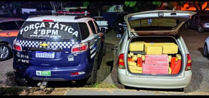 A ocorrência foi registrada na noite desta segunda-feira (21/3) quando a Equipe da Força Tática do 4º Batalhão de Polícia Militar realizava rondas ostensivas pelo bairro Residencial Ponta Porã e por volta das 23h45 avistou um veículo Toyota-Filder, com vidros escuros, aparentando estar carregado.