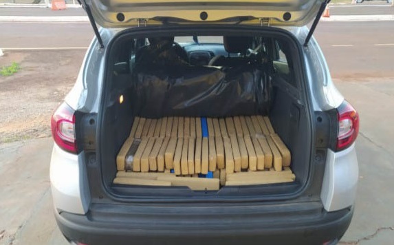 Após uma vistoria no interior do veículo, os policiais encontraram vários tabletes de maconha, escondidos no porta-malas e assoalho, totalizando 158,8 Kg (cento e cinquenta e oito quilos e oitocentos gramas) da droga. A equipe também descobriu que o automóvel possui adulterações nos sinais de identificação, com registro de roubo desde fevereiro de 2020 no Rio de Janeiro.