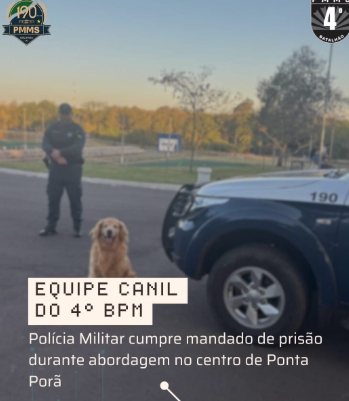 Na manhã desta quinta-feira (23), por volta das 10h, uma equipe do Canil do 4° Batalhão de Polícia Militar de Ponta Porã realizou a prisão de um homem de 47 anos que possuía mandado de prisão em aberto.