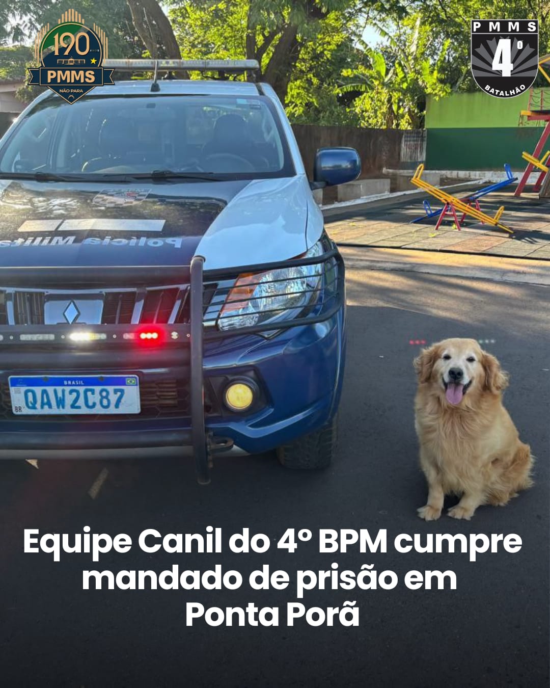 Na tarde desta sexta-feira (28), por volta das 16h, a equipe do Canil do 4º Batalhão de Polícia Militar de Ponta Porã realizou a prisão de um indivíduo que estava com mandado de prisão em aberto. A ação ocorreu durante abordagem de rotina realizada pelos policiais.