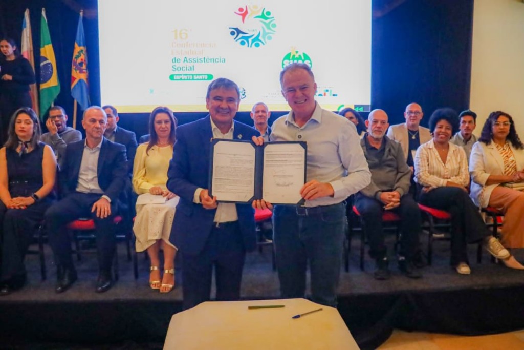 Wellington Dias reforçou o compromisso do presidente Lula com o fortalecimento do sistema e elogiou a gestão do governador capixaba, citando o estado como um exemplo na redução da fome e da pobreza aliada ao crescimento econômico.