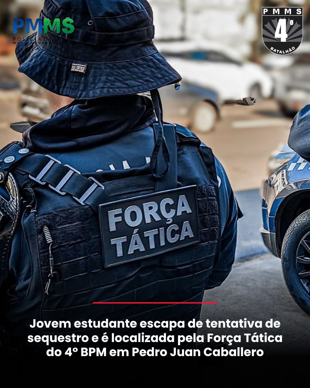Estudante escapa de tentativa de sequestro e é localizada pela Força Tática do 4° BPM em Pedro Juan Caballero