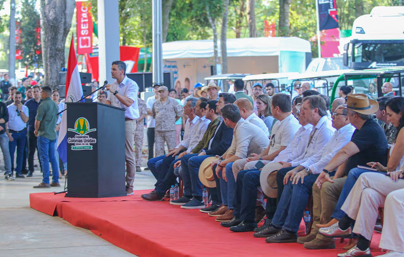 Durante la inauguración de la 29º Edición de la Agrodinámica Colonias Unidas 2025 en la localidad de Hohenau, departamento de Itapúa, el presidente de la República, Santiago Peña, ratificó el compromiso de su Gobierno de seguir apoyando al sector productivo del campo. El mandatario afirmó que este sector productivo es uno de los ejes principales del desarrollo del país.