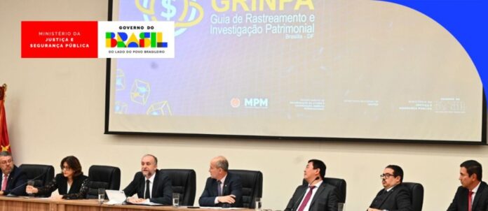 Brasília, 9/4/2026 – O Ministério da Justiça e Segurança Pública (MJSP) participou, nesta quinta-feira (9), do lançamento do Guia de Rastreamento e Investigação Patrimonial (Grinpa). Produzido em conjunto com o Ministério Público Militar (MPM), o documento teve sua cerimônia de lançamento realizada na sede do órgão militar. O evento ocorreu durante a abertura do curso de capacitação promovido pelo Programa Nacional de Capacitação e Treinamento para Combate à Corrupção e à Lavagem de Dinheiro (PNLD).