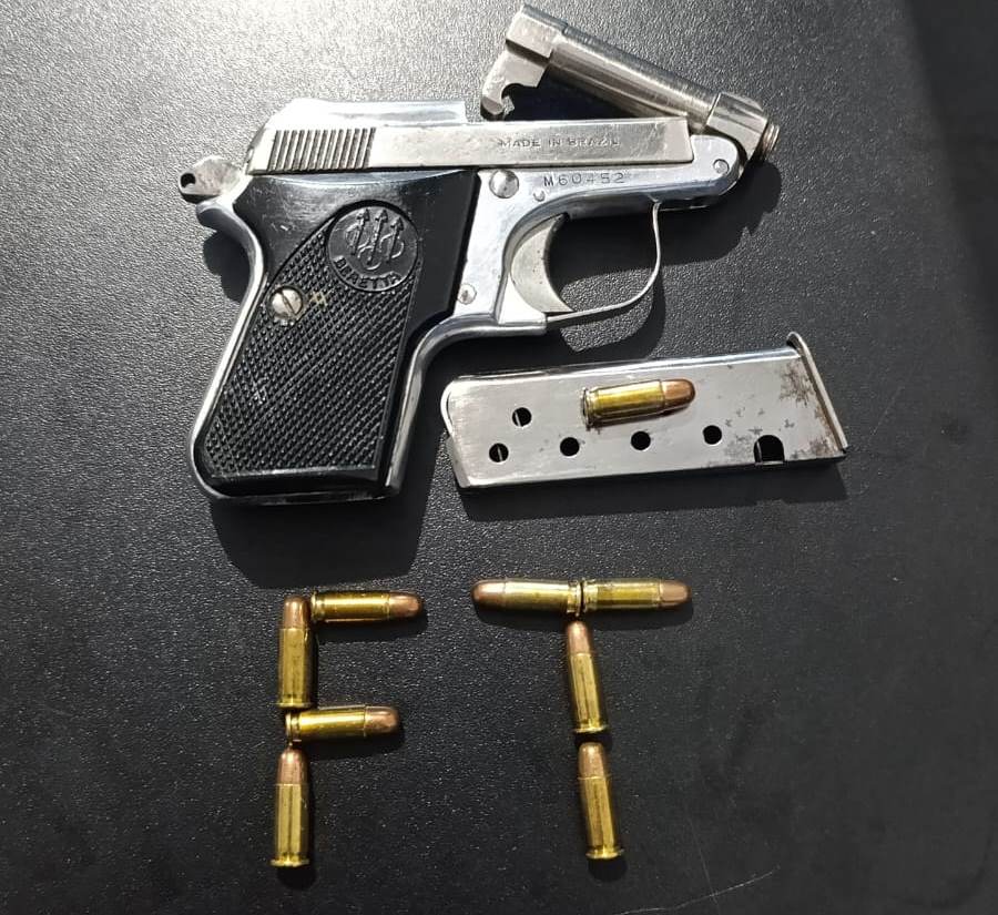 Durante a abordagem, a Força Tática constatou que o homem apresentava lesões nos braços, ombro, além de escoriações e ferimento na face, possivelmente decorrentes de uma queda. Foi apreendida uma pistola calibre 6.35, municiada com carregador contendo nove munições. A arma havia sido retirada momentaneamente do alcance do envolvido por uma testemunha, que deixou o local antes de ser identificada.