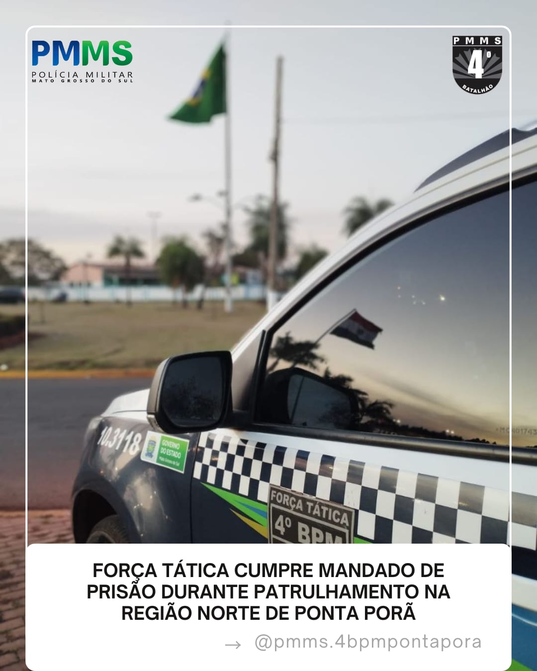De acordo com informações da corporação, os policiais visualizaram um indivíduo sobre o qual já havia conhecimento prévio da existência de mandado de prisão em aberto. Após a abordagem e checagem nos sistemas competentes, foi confirmada a ordem judicial expedida pela 1ª Vara Federal de Ponta Porã, vinculada ao Juizado Especial Federal Criminal Adjunto – TRF3, pelos crimes de tráfico de drogas e associação criminosa.