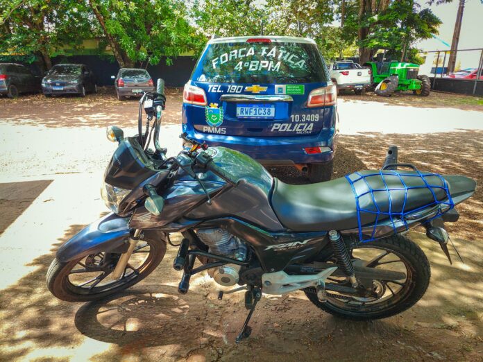 De acordo com informações policiais, a equipe da Força Tática de Ponta Porã recebeu uma denúncia indicando que uma motocicleta possivelmente dublê estaria circulando na cidade. Durante patrulhamento ostensivo nas proximidades do aeroporto, os policiais localizaram o veículo com as características informadas e realizaram a abordagem.