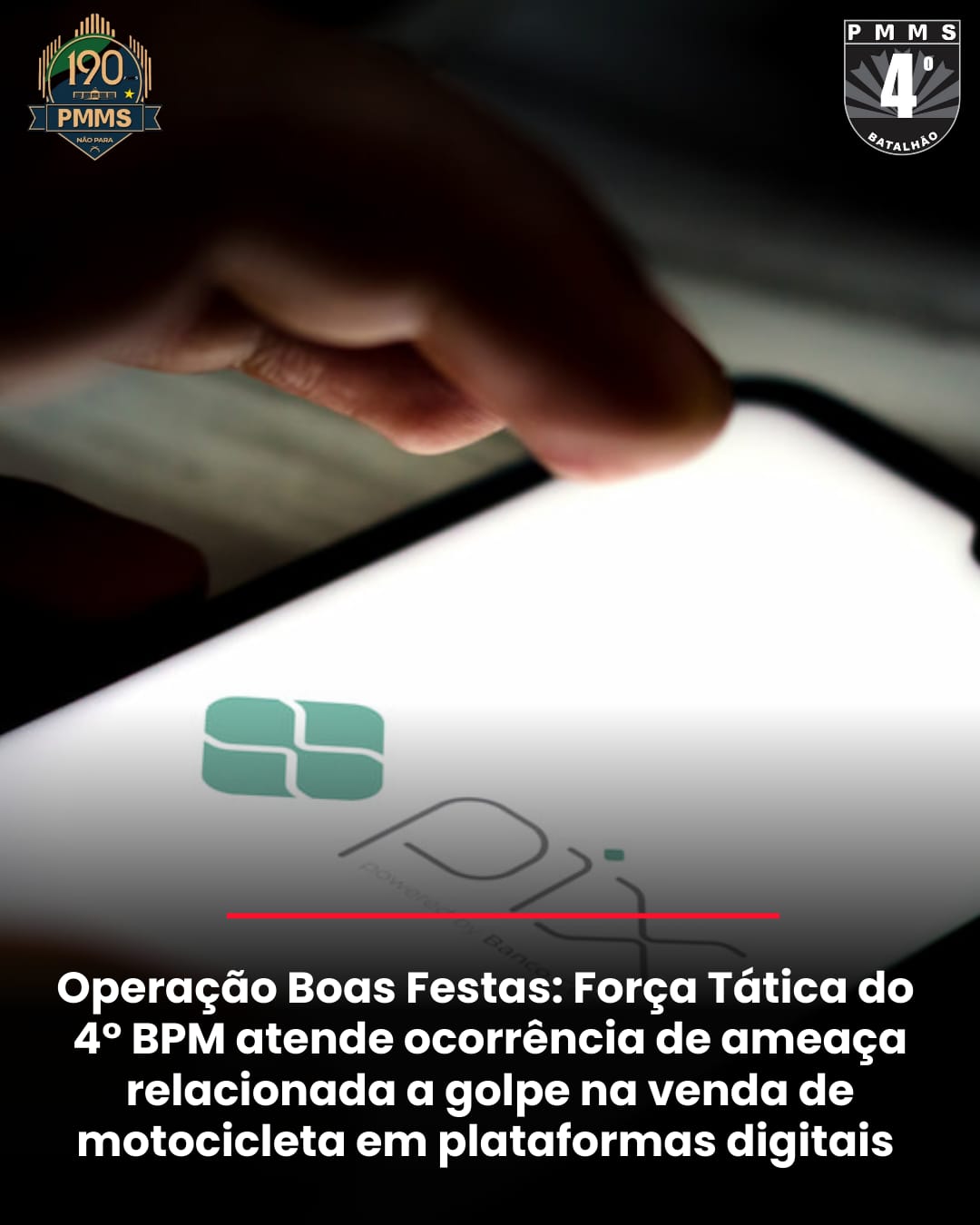 Durante a Operação Boas Festas, a Força Tática do 4º Batalhão de Polícia Militar foi acionada para atender uma ocorrência inicialmente registrada como estelionato, que acabou sendo caracterizada como ameaça, envolvendo uma negociação fraudulenta de motocicleta anunciada em rede social. O fato ocorreu na tarde deste sábado (20).