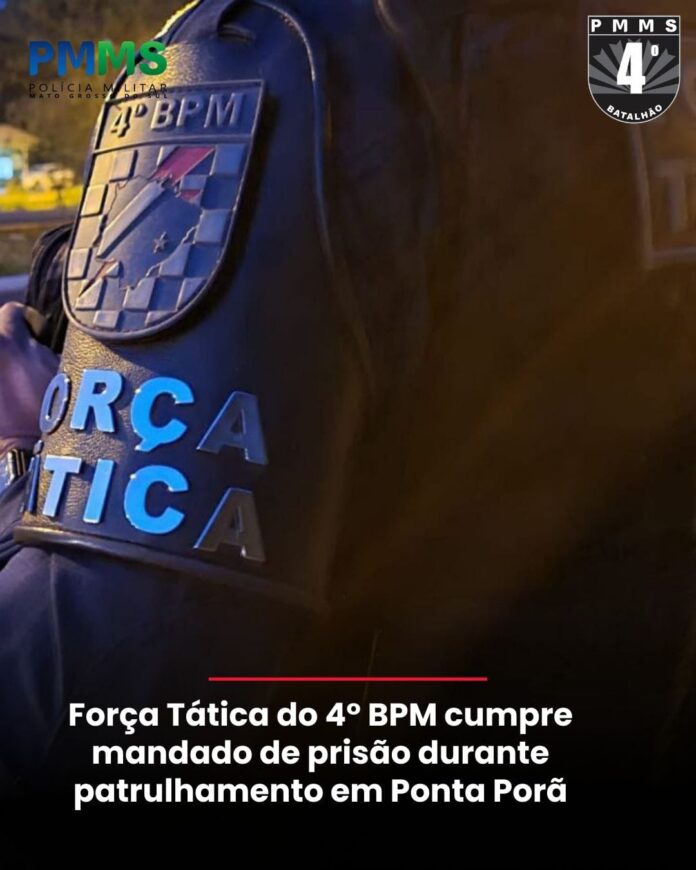 Neste domingo (15), uma equipe da Força Tática do 4º Batalhão de Polícia Militar realizou o cumprimento de um mandado de prisão durante patrulhamento ostensivo na região da Avenida Brasil, em Ponta Porã.